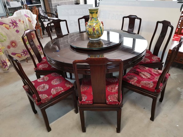 Part of our extensive range is shown here, each design is available in different sizes with a choice of colours, carvings and inlays. Rosewood extendable round dining table with 8 chairs open size include 32 inch lazy susan. Dining suite bird & flower carved square w/4 side chairs: It is very heavy and sturdy, very smooth to touch, full of patina. Choose from a wide selection of simple, elegant, and stylish dining room furniture that will help you design the perfect gathering space for your family and guests.